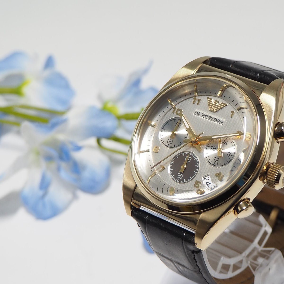 ★★★★ アルマーニ ARMANI クロノグラフ デイト メンズ 腕時計 シルバー F210 中古★★★★