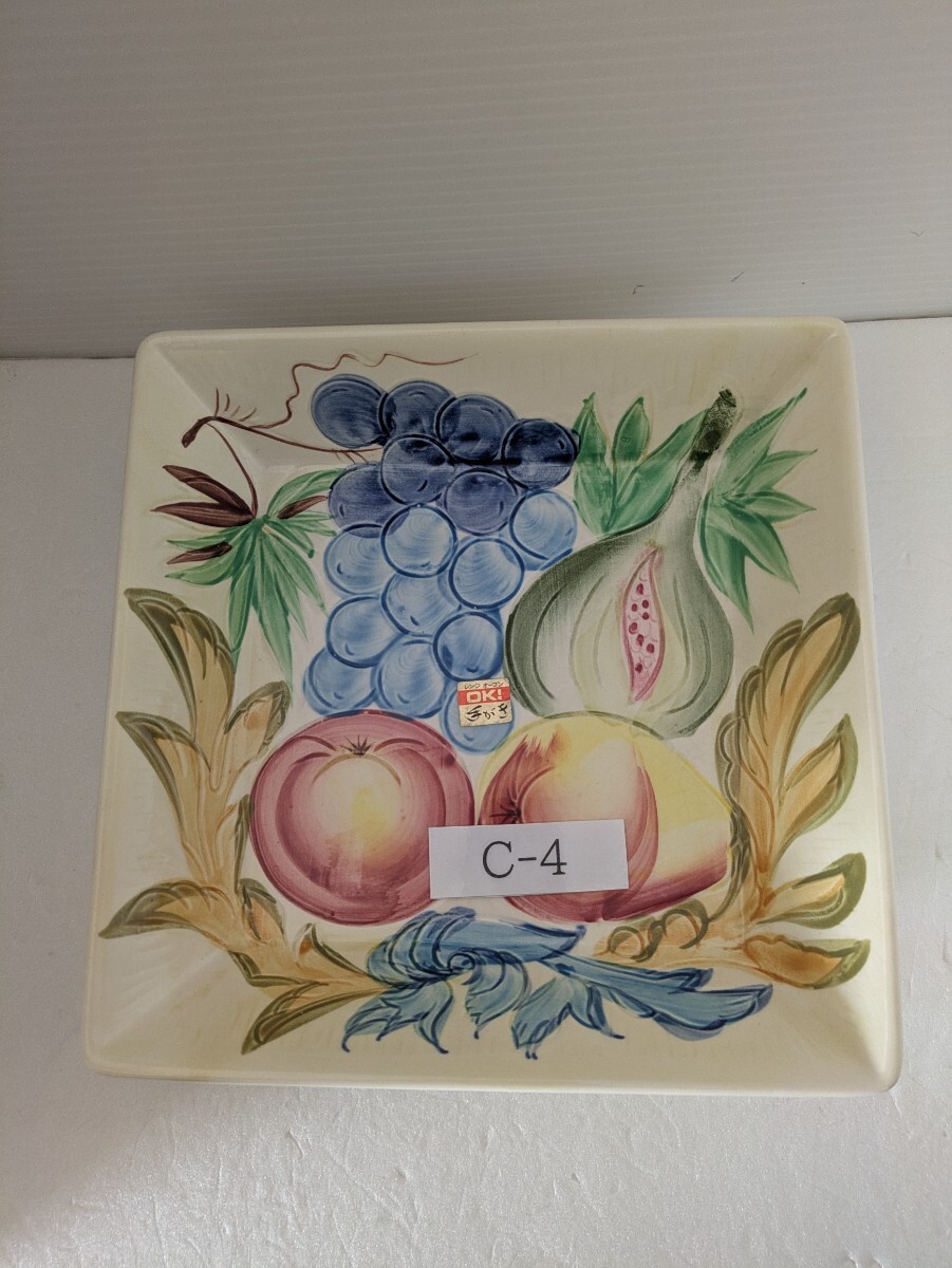 - 手描き 角皿 レンジ、オーブン使用可 新品未使用箱無し C−4