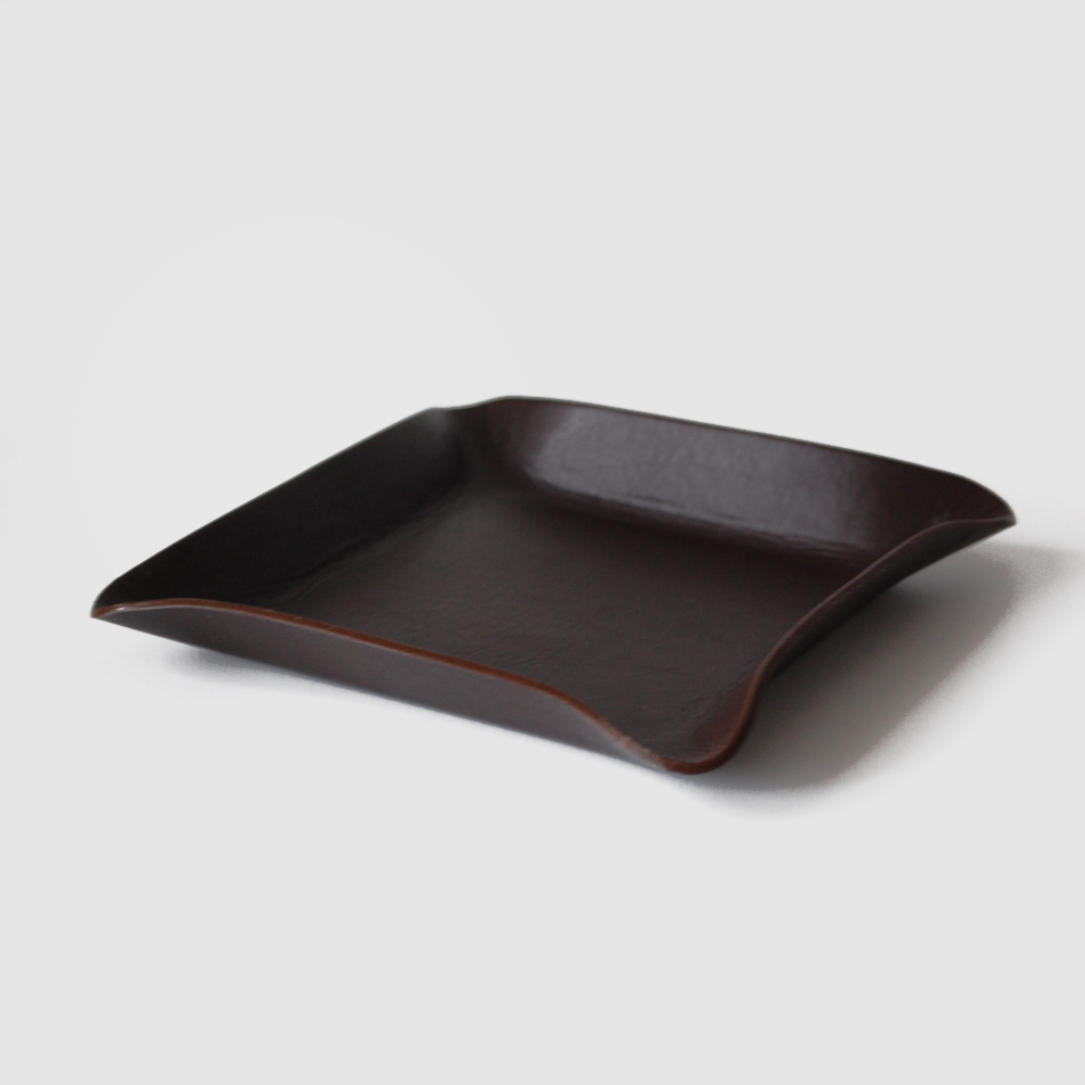 - 送料込み★お手入れいらずリサイクルレザースクエアトレイ カルトン マネートレー小物入れ アクセサリー 腕時計 鍵 収納★チョコ 茶色