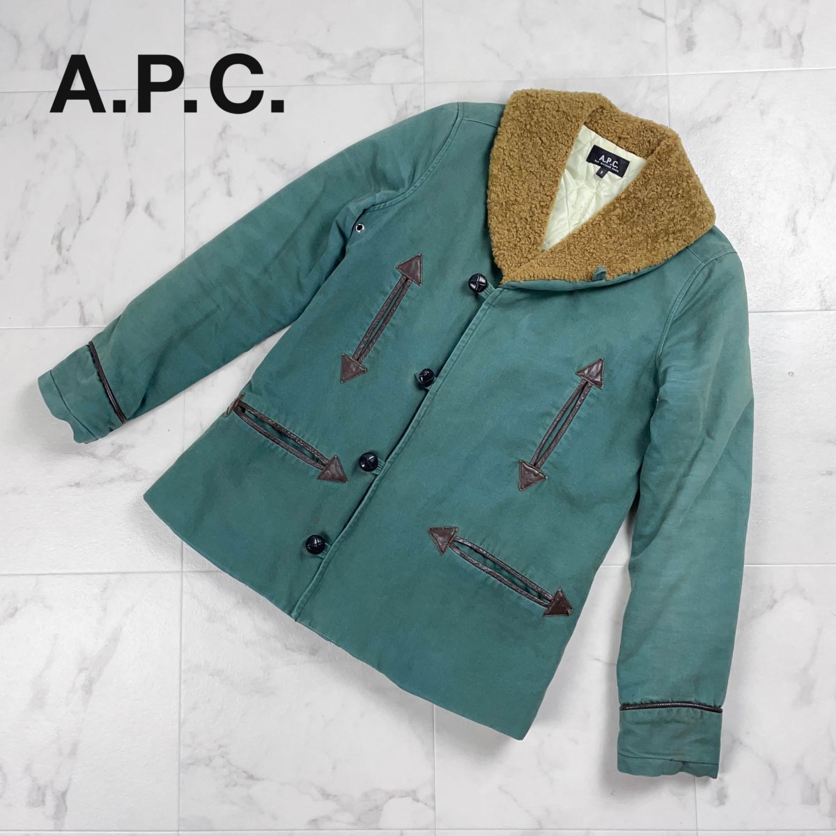 - APC アーペーセー ショールジャケット マッキーノコート ブルゾン 裏ボア 中綿キルティングジャケット エメラルド 緑 サイズS*XC899