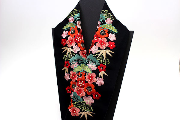 - ●送料 全国一律 360円● お洒落!!豪華!かわいい!! 振袖用 刺繍半襟 袴にも! 松竹梅 黒