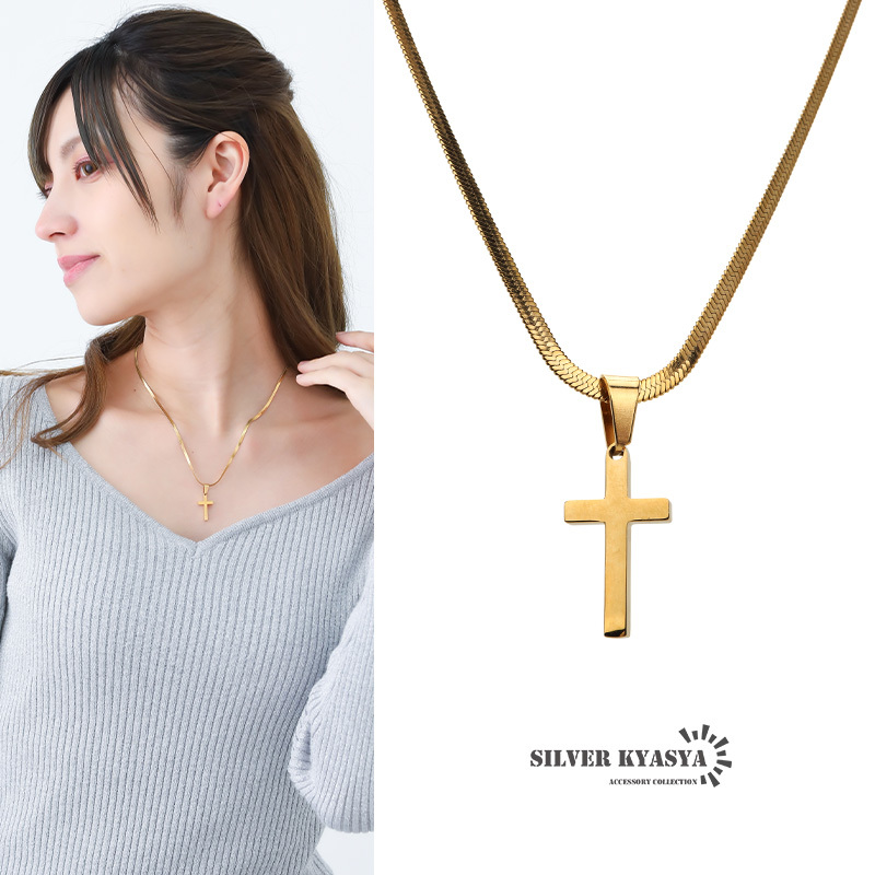 > クロスネックレス レディース スネークチェーン 十字架 ネックレス 女性 ゴールド 18K GP ステンレス 金属アレルギー対応