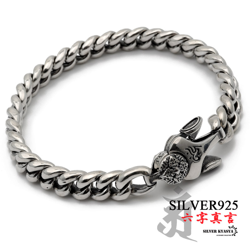 > 六字真言 ブレスレット メンズ シルバー925 喜平 チェーンブレスレット 銀 金剛杵 梵字 刻印 金属アレルギー 専用BOX付属