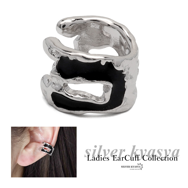 > イヤーカフ 金属アレルギー シルバー925 変形 ゆがみ 透かし シルバー 銀 ブラック 黒 イヤーカフ イヤークリップ 片耳用