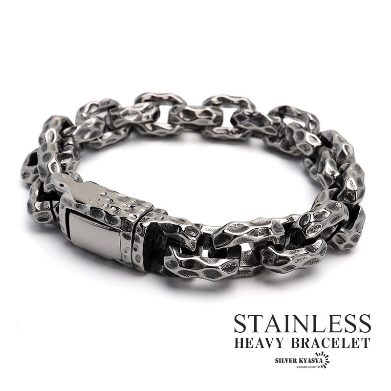 - 重厚 槌目ブレスレット メンズ チェーンブレスレット アンカーチェーン シンプルブレスレット 槌目 岩石 岩 ステンレス316L