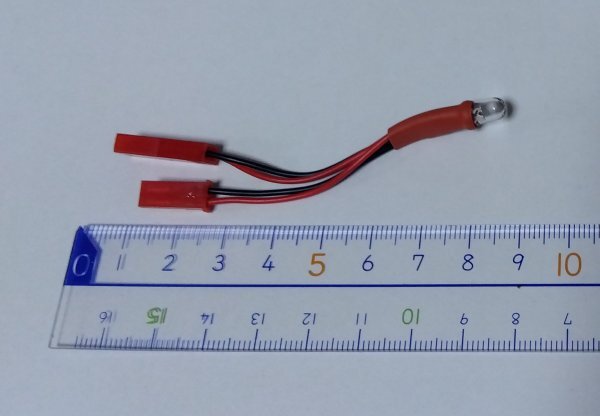 - ラジコン用 5mmLED 赤色 配線 JSTコネクタ並列分岐用付き 1本