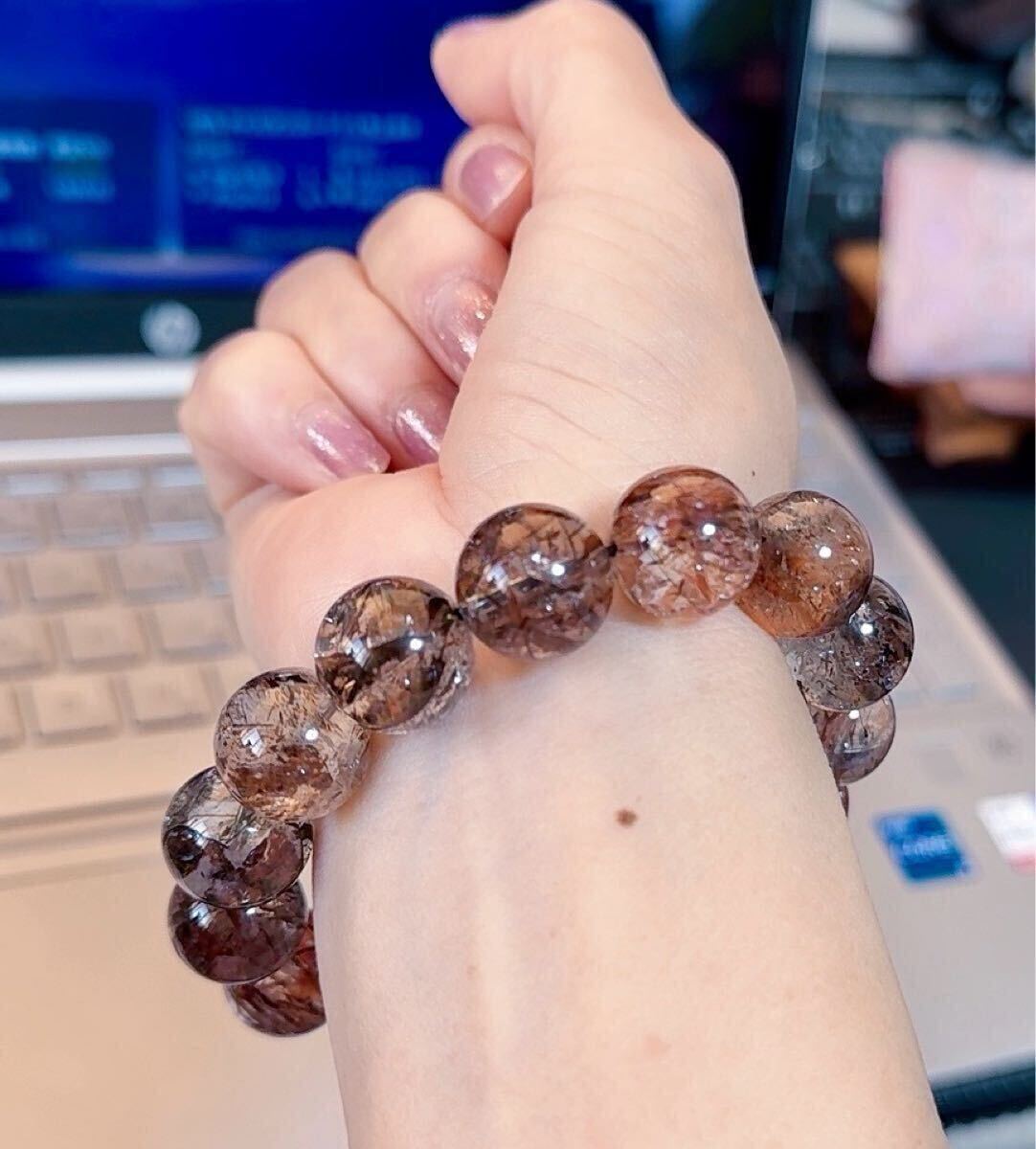 > R2-0429 超人気スーパーセブン 最新入荷 ブラックゴールド ブレスレット 大粒14.8mm 内周18+cm パワーストーン 天然石