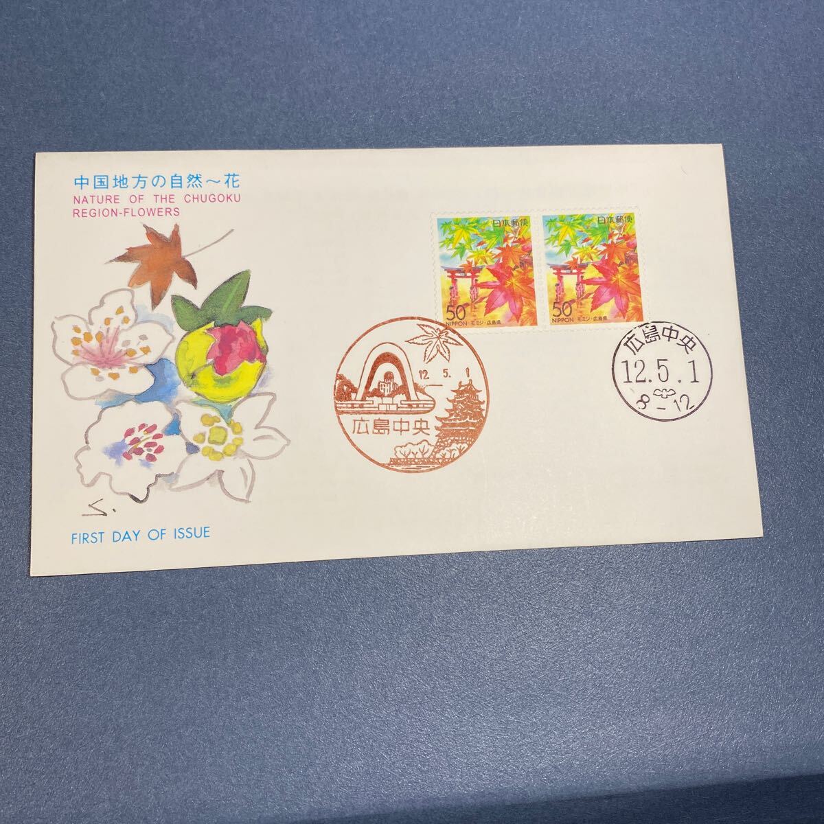 - 日本切手 初日カバー 古い封筒 中国地方の自然〜花