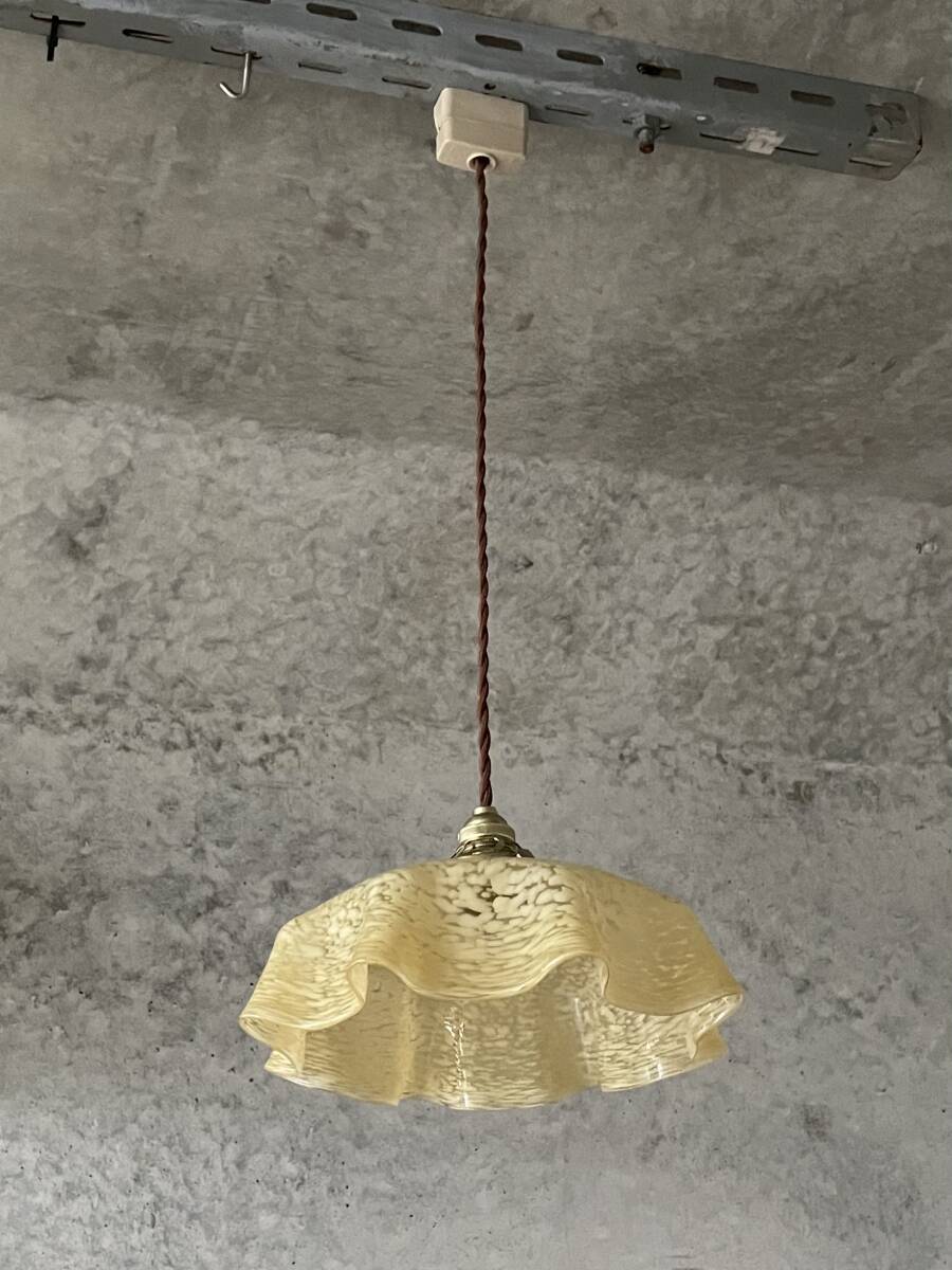 - 43. 40’s フランスアンティーク 古民家 ガラスシェードペンダントランプ フリル 吊り下げ シーリングライト 店舗 美容室