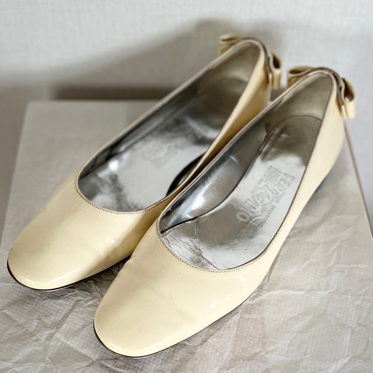 - Ferragamo フェラガモ バックリボン エナメル フラットシューズ