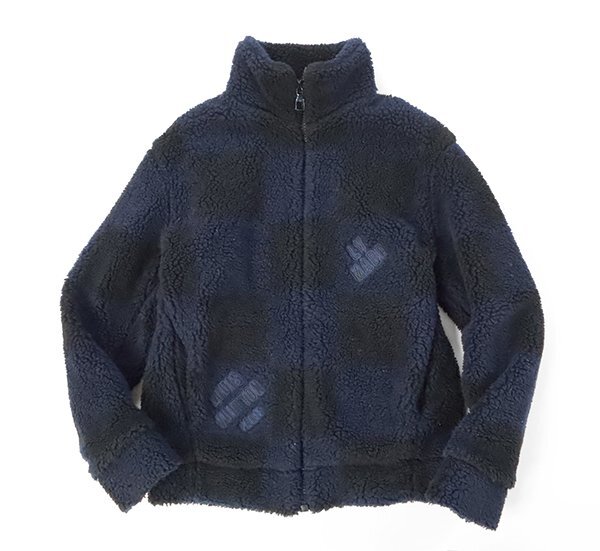 > 良品 LOUIS VUITTON ◆ ダミエ ボアフリース ジャケット ネイビー XSサイズ (国内正規品) ブルゾン ルイヴィトン ◆9/MU11