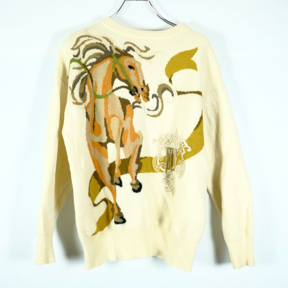 > 1980s FICCE 馬 デザイン柄ニットセーター ウール 古着屋 刺繍 長袖 フィッチェ ビートたけし着用 初期作品 80s 90s
