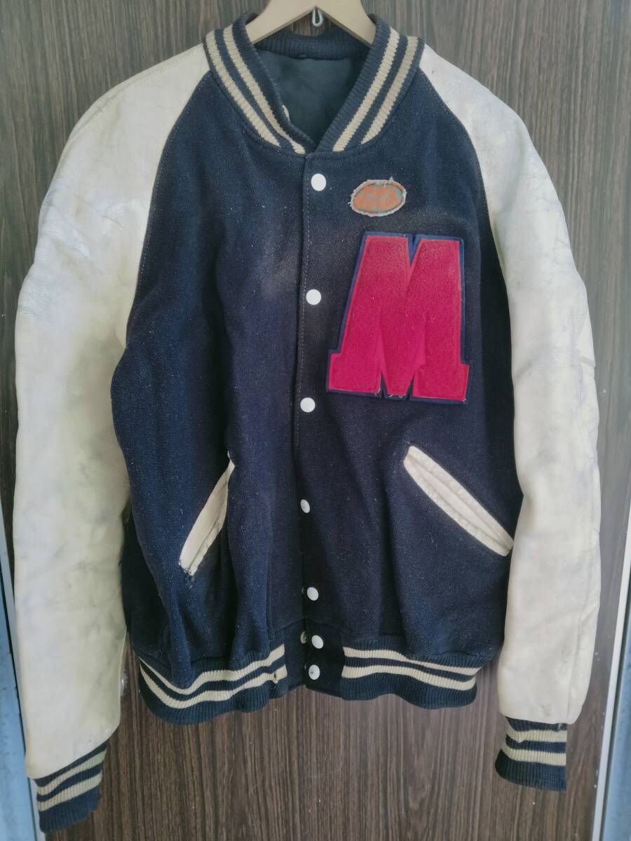 > かなり古い、スタジアムジャケット スタジャン DELONG デロング WPL8936 USA製 ビンテージ 袖部レザー