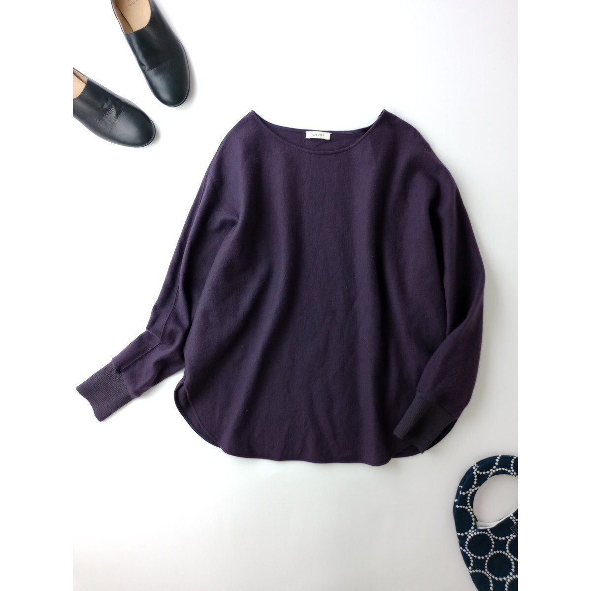 - DES PRES デプレ トゥモローランド ウール ニット コンビネーション ボートネック プルオーバー 長袖 トップス パープル F