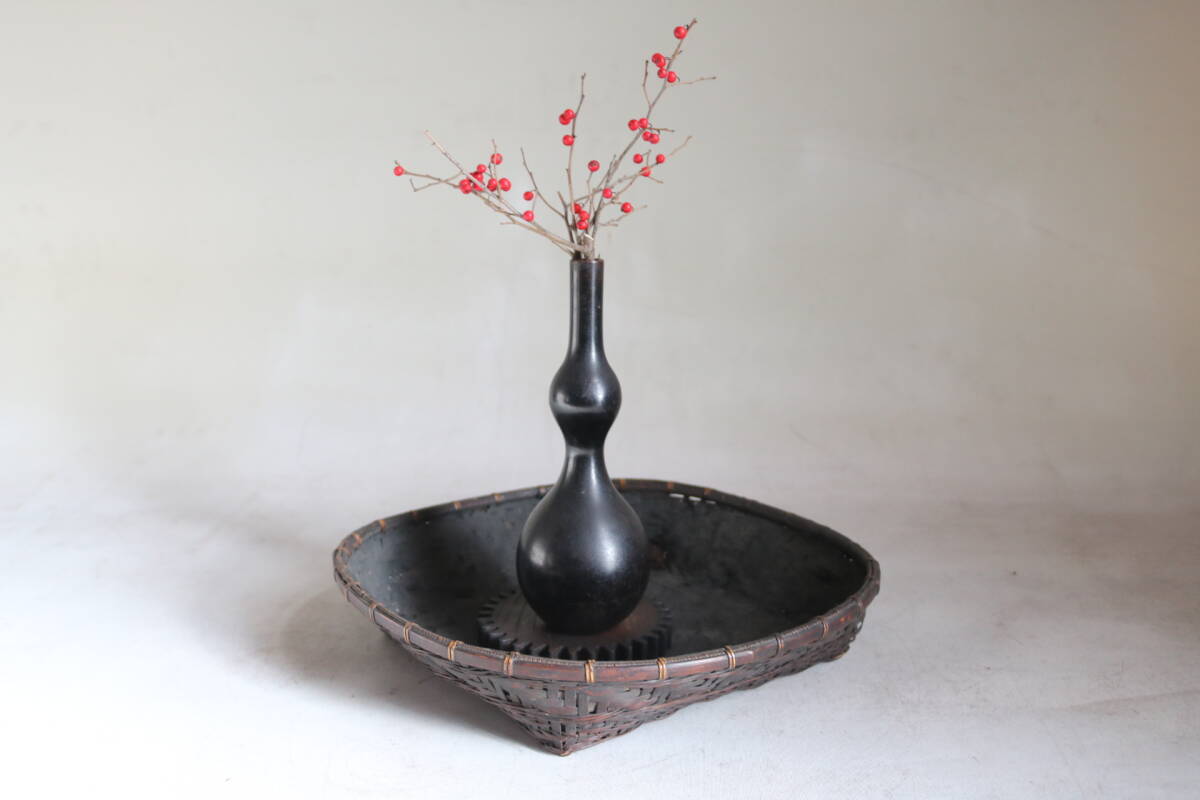 - 【伊董】C15.アンティーク!古民藝!味良!古い籠炭斗竹製明治茶道竹籠炭取り花籠 #侘び寂 #和モダン #カゴ #竹細工 #スミトリ
