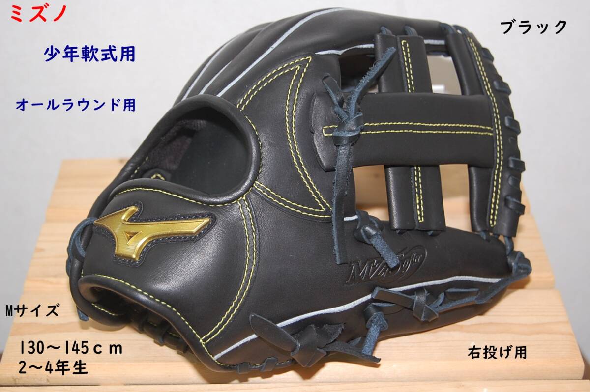 - 軟式少年用/グラブ/ミズノ/右投げ用/オールラウンド用/ブラック/2~4年生/Mサイズ/11000円即決