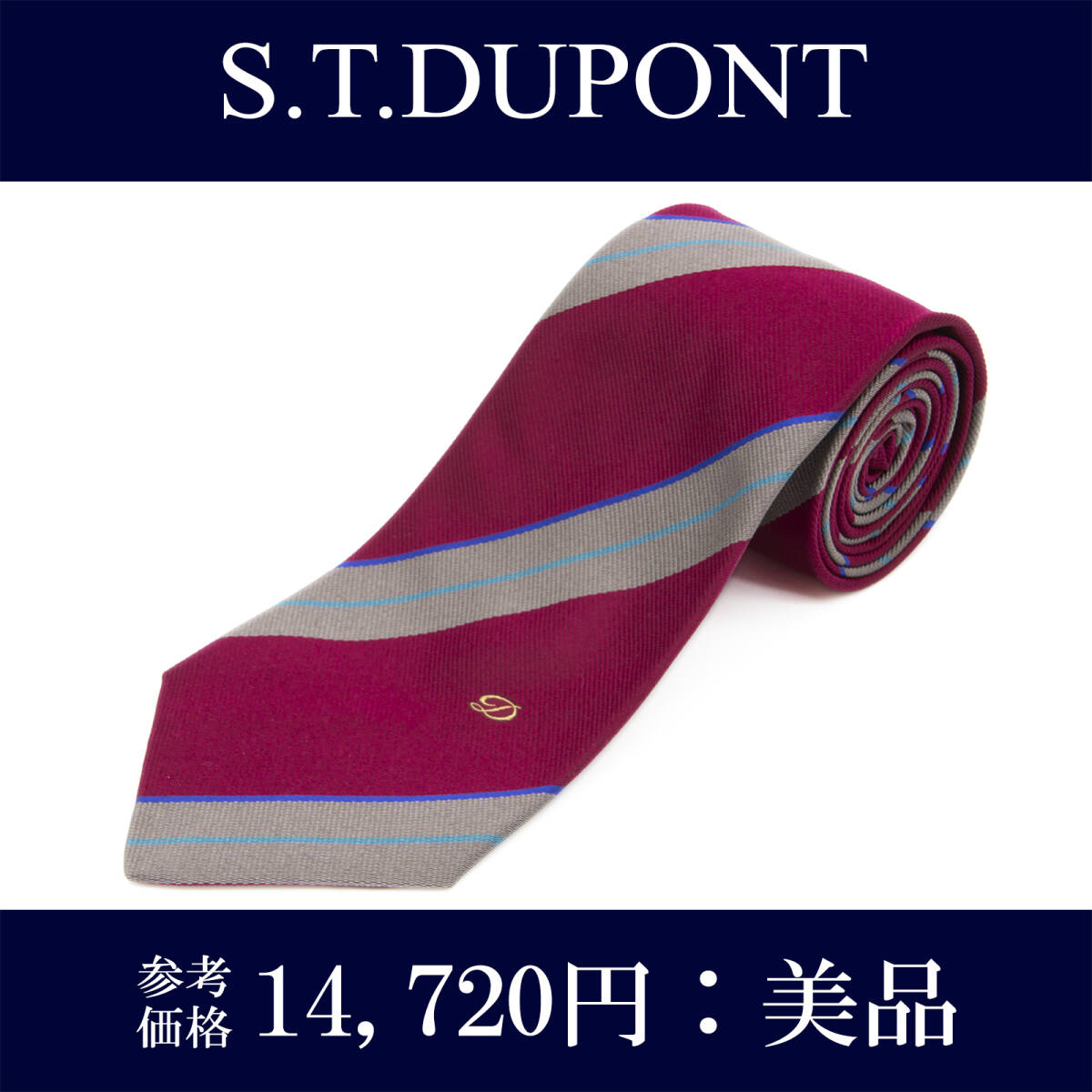 - 送料無料 エステーデュポン ネクタイ ジャガードタイ シルク ガーネット グレー 青 ビジネス ブランド ストライプ ロゴ おしゃれ 綺麗 N322