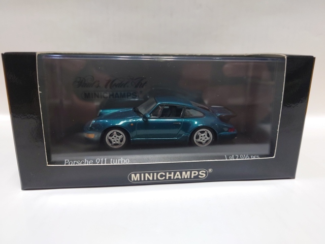 - B-1211 中古品◇ミニカー MINICHAMPS ミニチャンプス 1/43 Porsche 911 Turbo 1990(ターコイズメタリック)