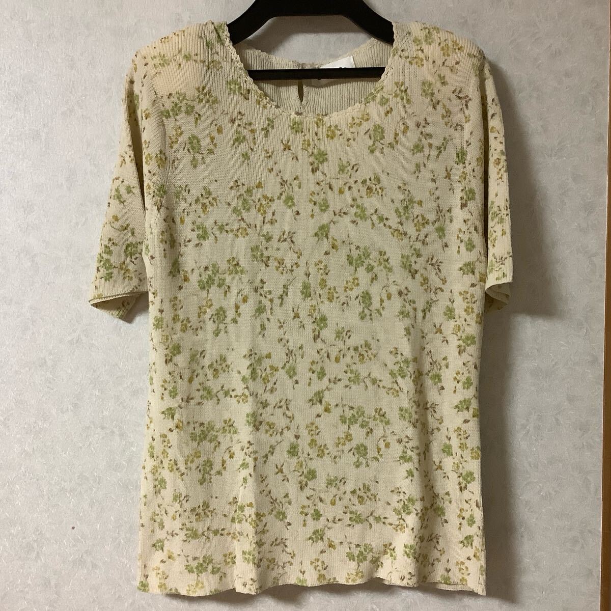 - 昭和レトロ Simona 花柄 半袖ニット セーター サマーセーター 綿