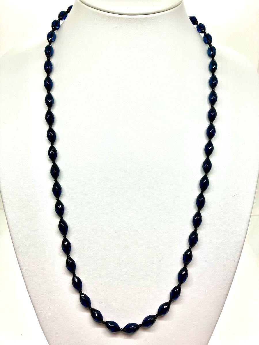 - 【新品】ブルー琥珀ロングネックレス*カットデザインネックレス*こはく*コハク*貴重*アンバー*リトアニア産