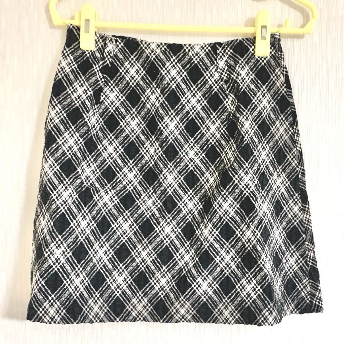 - 匿名配送 チェックプリーツスカート ブラック ホワイト 白黒 ミニスカート 台形スカート スクールスカート 学生服