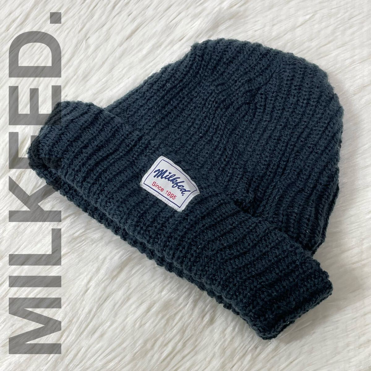 - MILKFED. ミルクフェド ロゴ ワッペン ニット帽 帽子 ブルーグリーン CP081