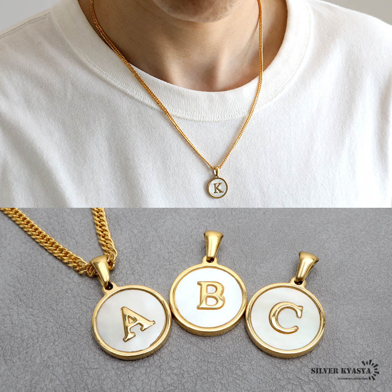 - (Z、45cm) イニシャルネックレス ゴールド ホワイト ラウンド ステンレス 18KGP ダブル喜平 金属アレルギー対応