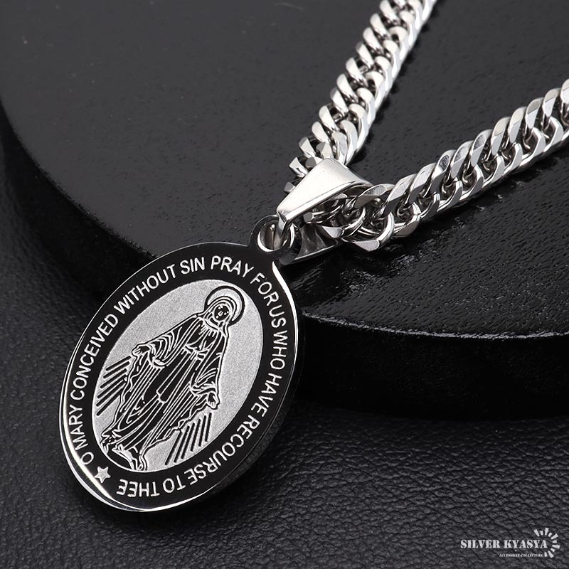 - (50cm) ステンレス マリアネックレス コインネックレス シルバー ダブル喜平チェーン 男性 メンズ 金アレ対応