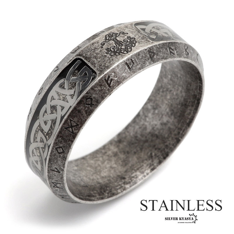 - (29号) ステンレス ケルト模様リング アンティークシルバー つや消し ユグドラシル ヴィンテージリング 金属アレルギー対応