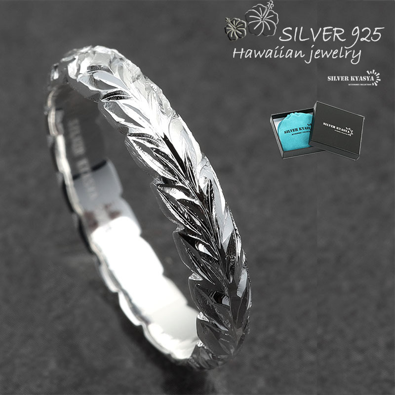 > (18号) ハワイアンジュエリー リング シルバーリング 指輪 シルバー925 マイレ 甲丸 刻印 手彫り 専用BOX付属