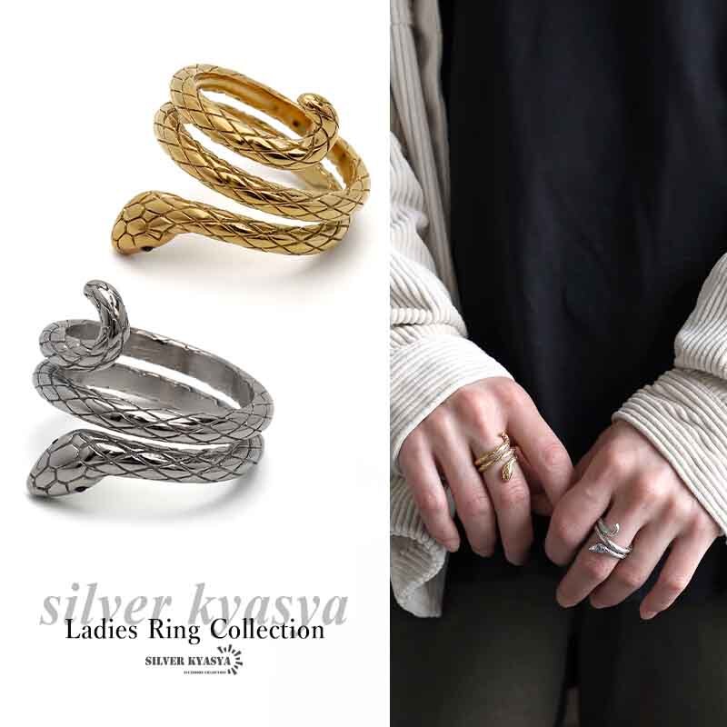 - (シルバー、14号) スネークリング ステンレス ゴールド 18K GP シルバー レディース 蛇 指輪 金属アレルギー対応