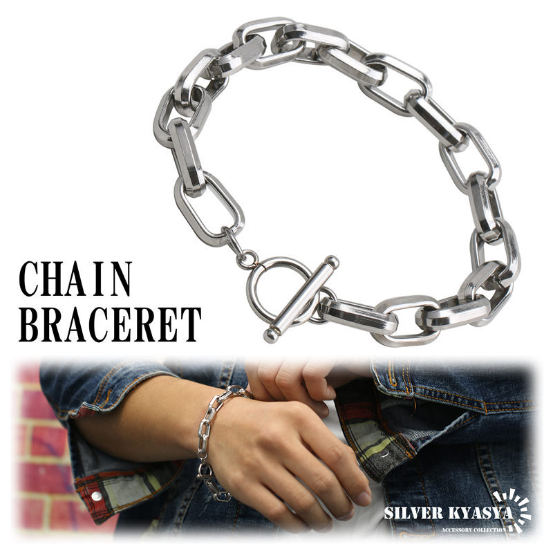 > (21cm) ステンレス チェーンブレスレット マンテル 2面カット トグル シルバー 銀 鎖 バングル 2サイズ