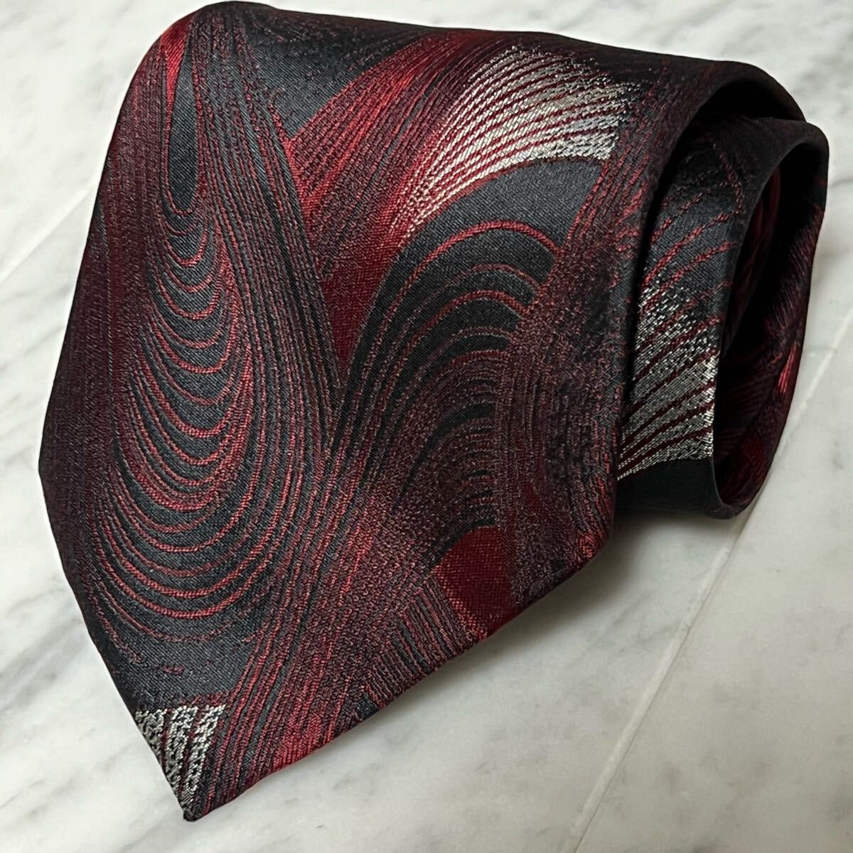 - 【未使用に近い】 999円~ ヒロココシノ ネクタイ ブラック レッド 総柄 (GB4)
