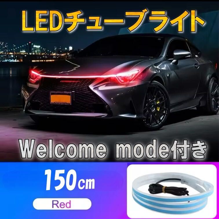 > レッド ウェルカムモード チューブライト 自動車 バイク フロアライト ルームライト アイライン アンダーライト 防水 LEDテープ 汎用 12V