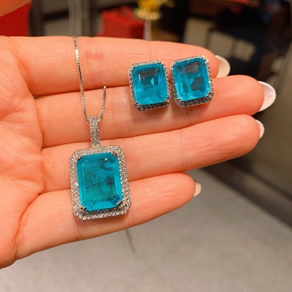 > 《最初の入札者様は開始価格で購入可能》チャームparaibaトルマリンジュエリーセット、ウェディングパーティー aa