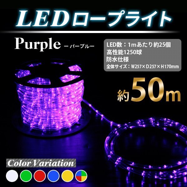 - ■送料無料■50M防水LEDロープライト イルミネーション■1250球▼電源コート付 紫
