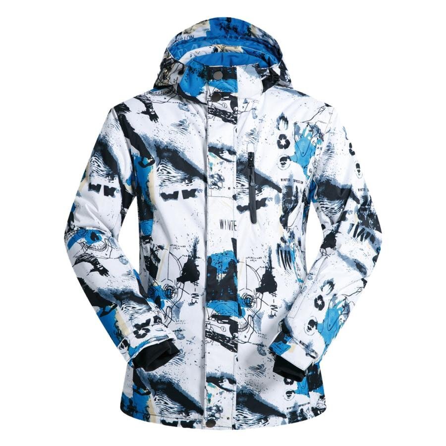 - スキーウェア スノージャケット スノーボード スノボ スキー メンズ レディース ジャケット 防風 防雪 防水 保温 ホワイト×ブルー-XL