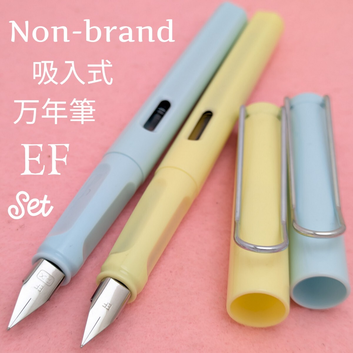 - [未使用新品] ノンブランド 吸入式 万年筆 EF / 極細字 イエロー ライトブルー 2本 ボトルインク 付き 2K1939