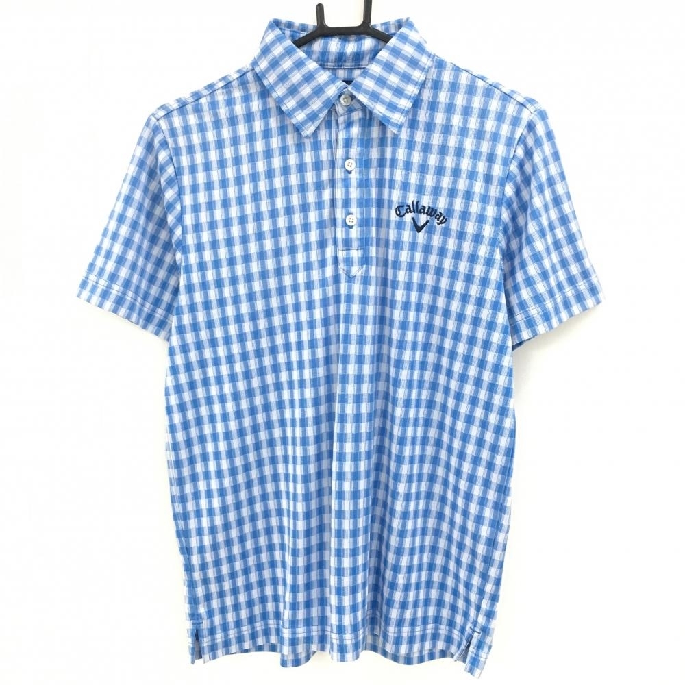 > 【超美品】キャロウェイ 半袖ポロシャツ ブルー×白 チェック メンズ M ゴルフウェア Callaway