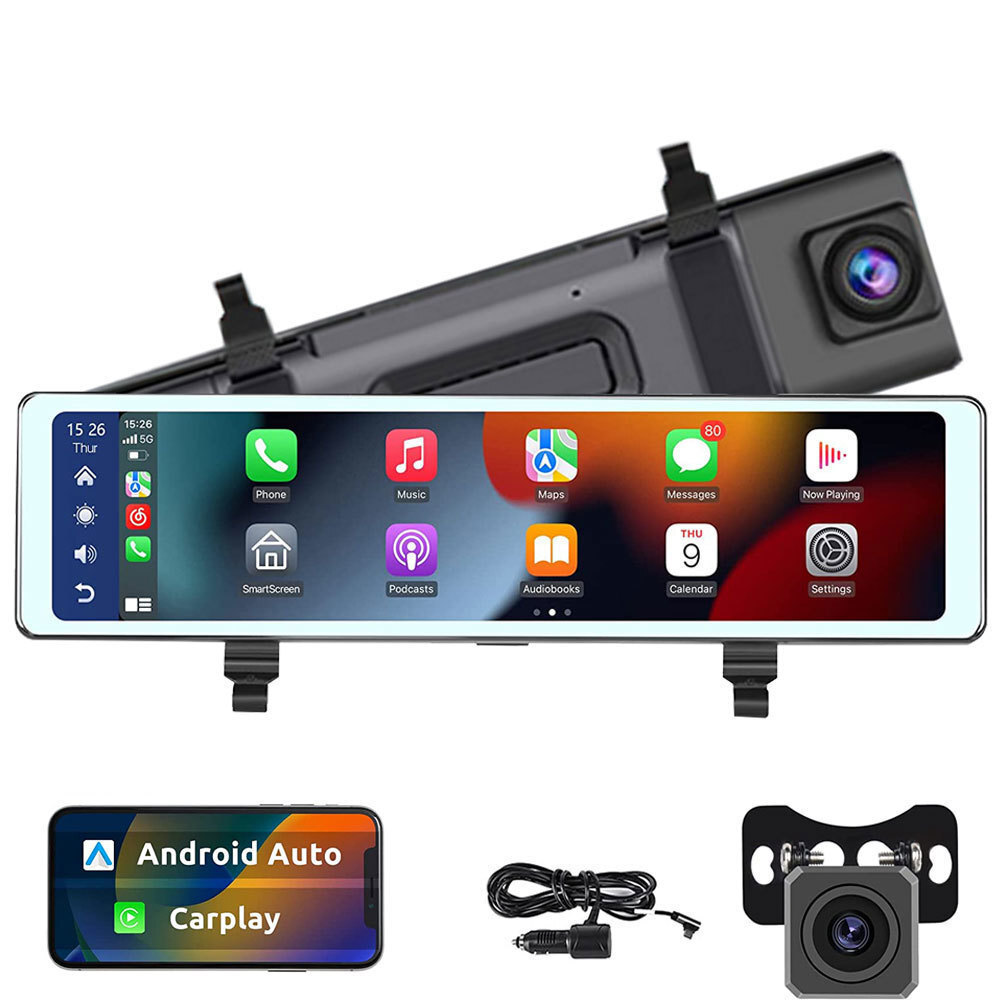 - ワイヤレスCarplay/AndroidAuto対応12インチIPS液晶画面 ミラー型ドライブレコーダー ポータブルナビカーナビ機能 2カメラ録画 音楽対応