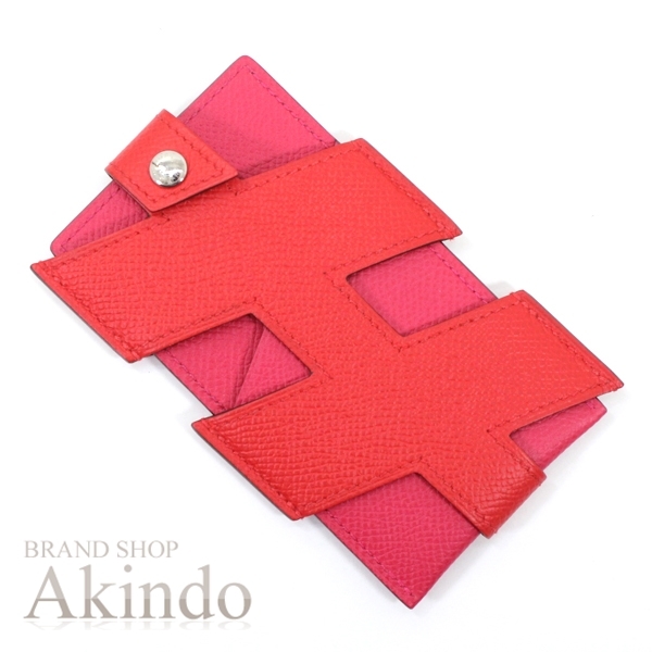 - 【新品】エルメス Hタグ カードケース ルージュクーxローズエクストリーム 赤xピンク系 エプソン パスケース HERMES IDホルダー