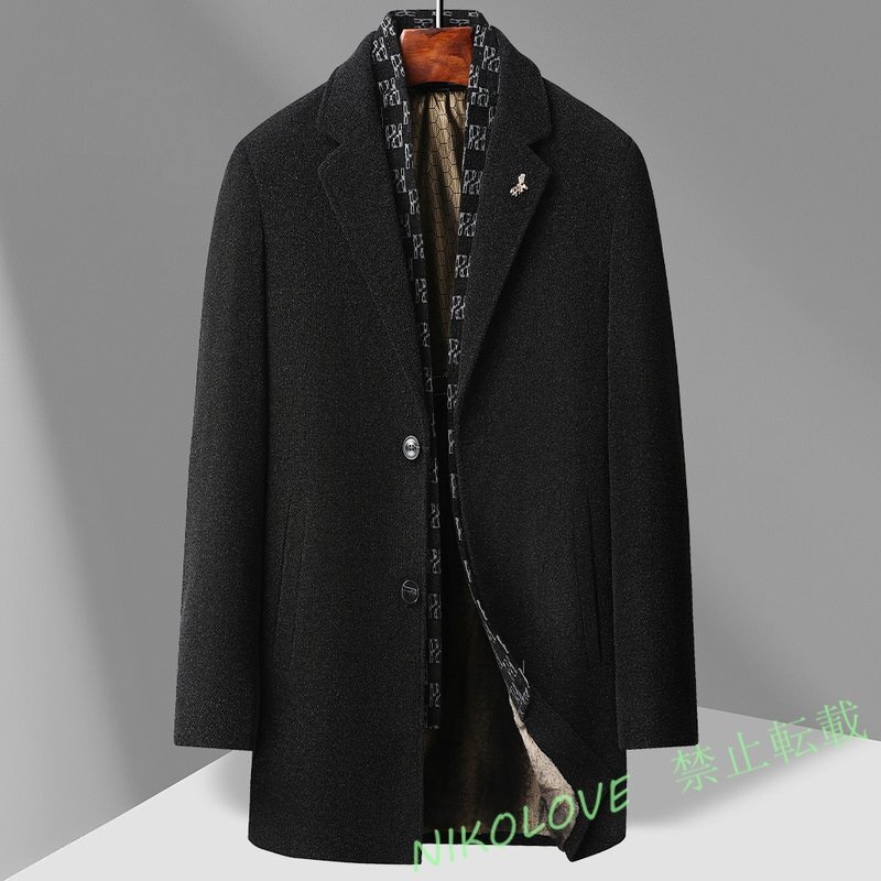 - ☆新品ウールコート インナーダウン付き 裏フリース 手作り ロングコート カシミヤ チェスターコート ブラック XL~4XL LK474