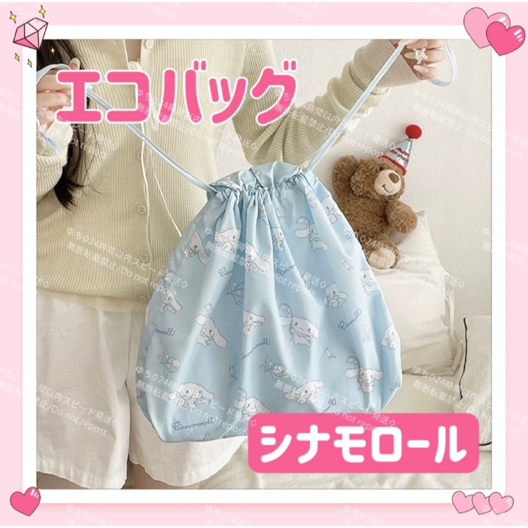 - 海外限定 サンリオ 2way 巾着 エコバッグ トートバッグ サブバッグ 肩掛け 手提げ シンプル オシャレ 可愛い シナモロール