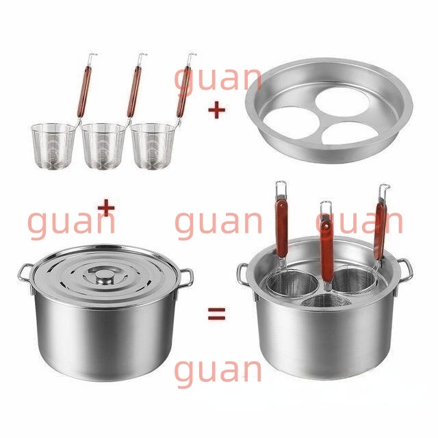 - 業務用店舗用 そばゆで釜 茹麺鍋セット リング付 ザル付 3*13cm ステンレス IH対応 ふきこぼれない 3穴