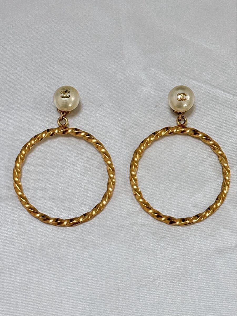 - CHANEL シャネル イヤリング 97P ココマーク パール フープ ゴールド アクセサリー