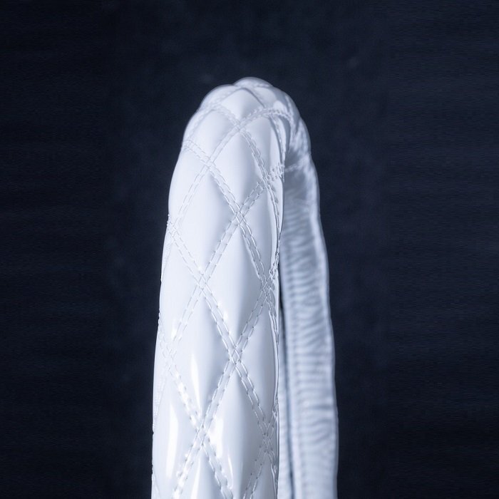 - 極太 ダブルステッチ エナメルキルト ハンドルカバー ホワイト S(36~37cm)/サンバー クリッパー アクティ スクラム【送料800円】