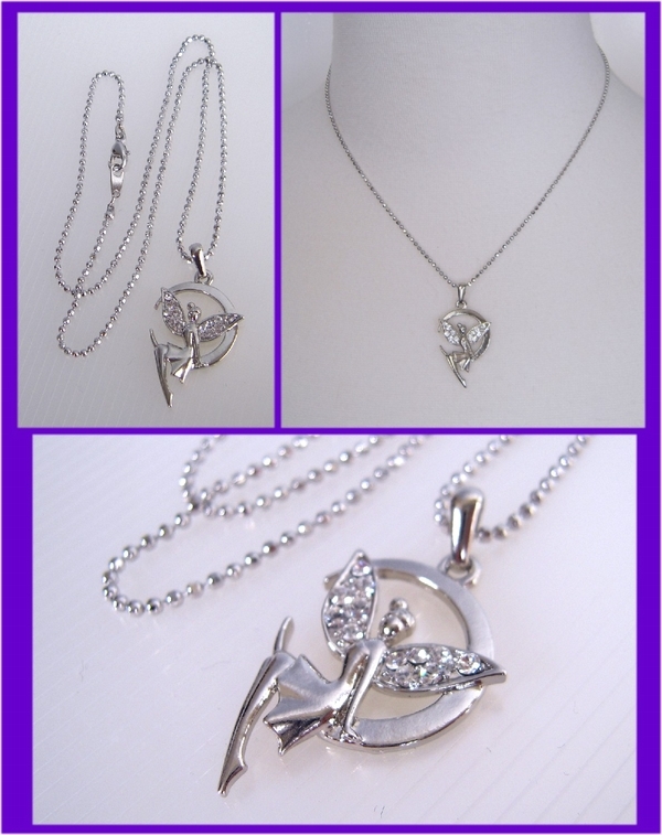 - N5720/三日月と妖精ネックレス ムーンフェアリーペンダント キラキラ羽 スワロフスキークリスタルラインストーン使用