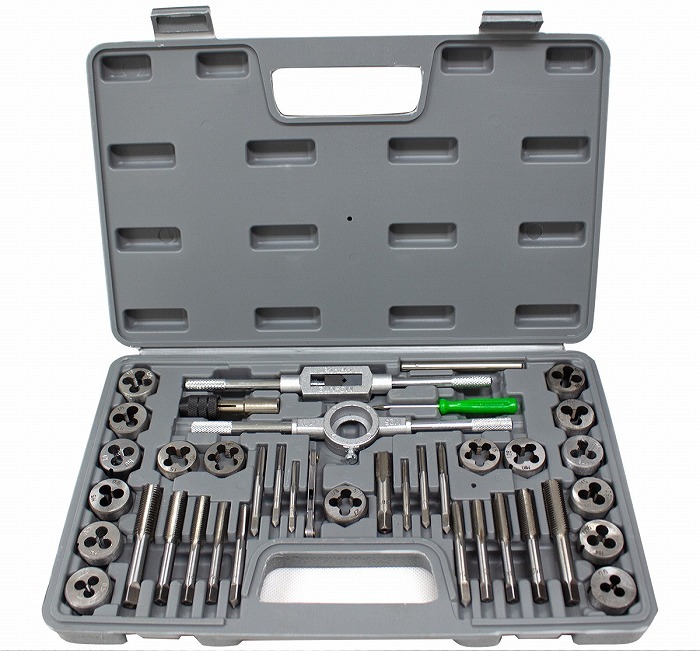 - 40種類 タップ ダイス セット ネジ ボルト 山 穴 修復 錆び 落とし サビ ネジ 切り 修正 ナット 40pcs ねじ 補正 ミリ M3-M12