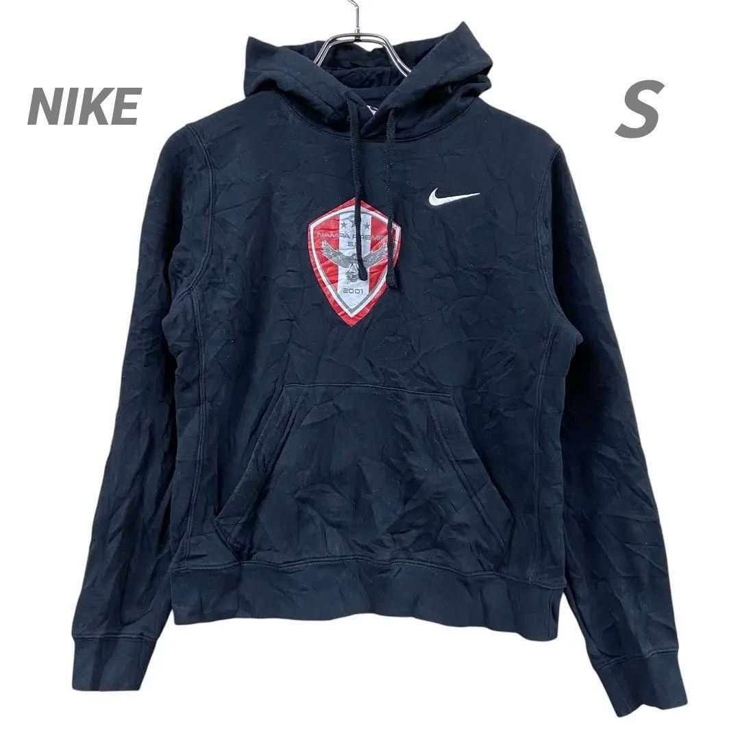 - ナイキ レディースパーカー 黒 S サッカー ワッペンロゴ 秋冬【822】