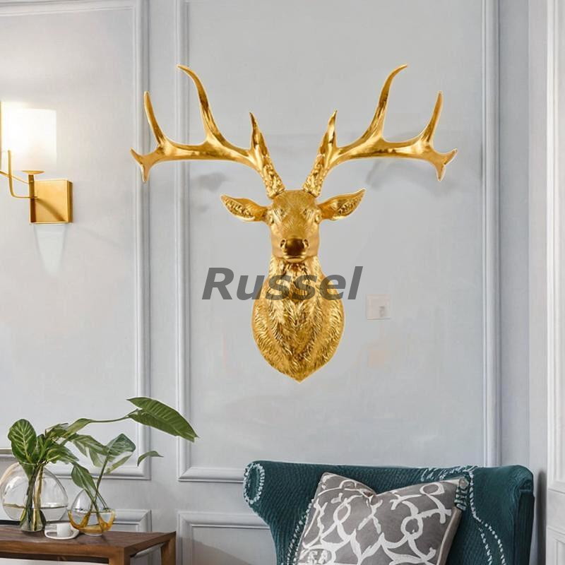 > ウォール デコレーション エレガント 鹿 ハンティングトロフィー風 おしゃれ 壁掛け インテリア オブジェ 置物 アート ギフト ゴールド 4-7